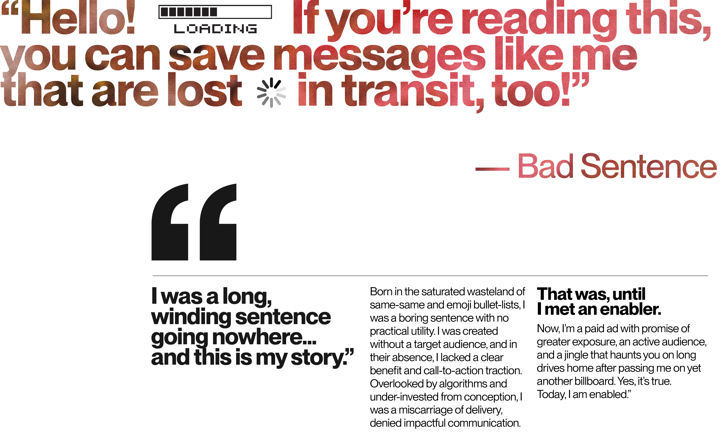 We want to articulate a voice that sounds human, dynamic and animated. In essence, we want to enable your brand.