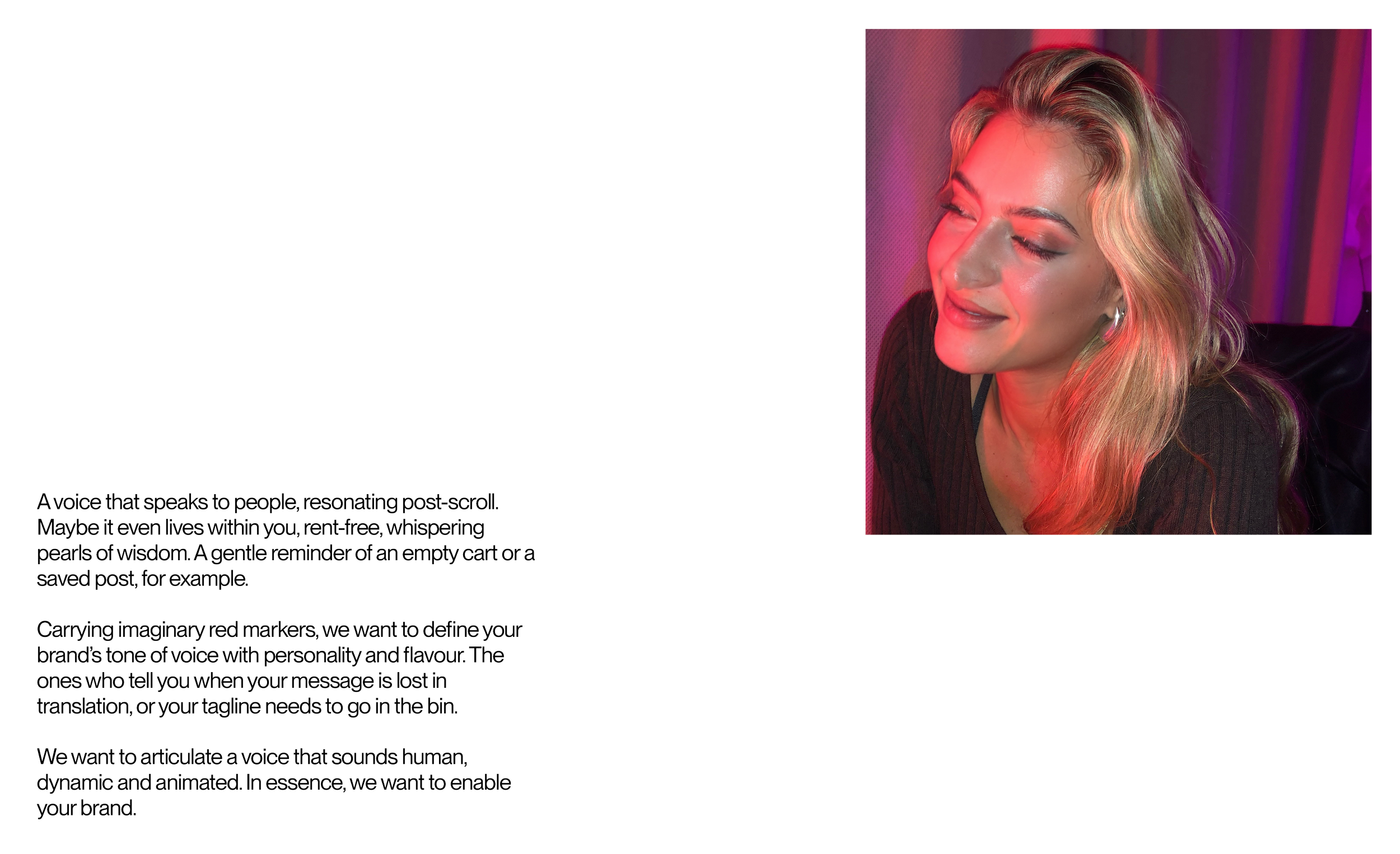 From developing campaign lines to informing marketing activations – OOH , TVC and radio included – here your brand amplifies its voice across channels.